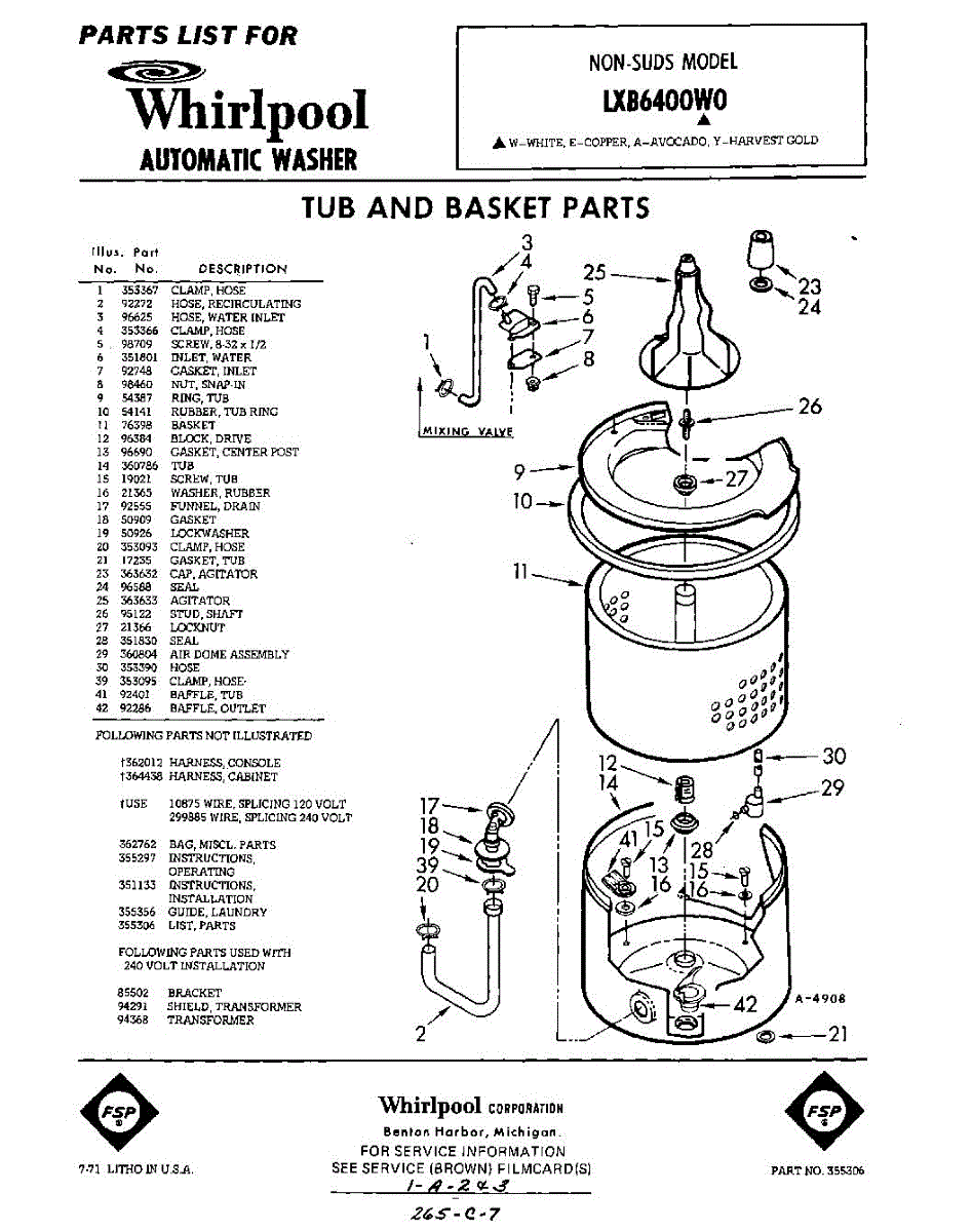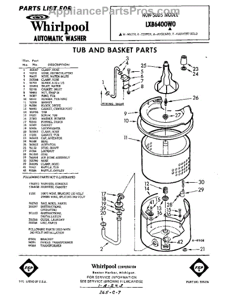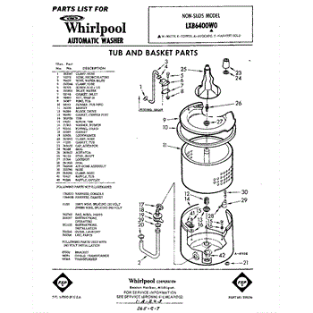 Parts for Whirlpool LXB6400W0: 01 - Tub And Basket , Lit / Optional Parts