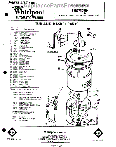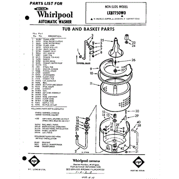 Parts for Whirlpool LXB7750W0: 01 - Tub And Basket , Lit / Optional Parts