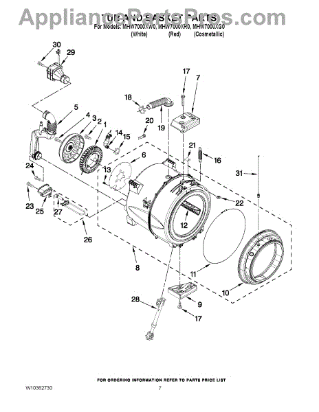The Tub Suspension Spring is an OEM part for Whirlpool washers. It is responsible for supporting and stabilizing the washer tub during the wash cycle. This spring ensures proper balance and reduces excessive vibrations and movement of the tub.
