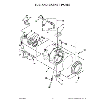 This tub clamp secures a flexible seal or hose to the appliance's tub, maintaining a tight, leak-resistant connection. Replace a weakened or damaged clamp to stop leaks and keep the tub joint stable during operation.