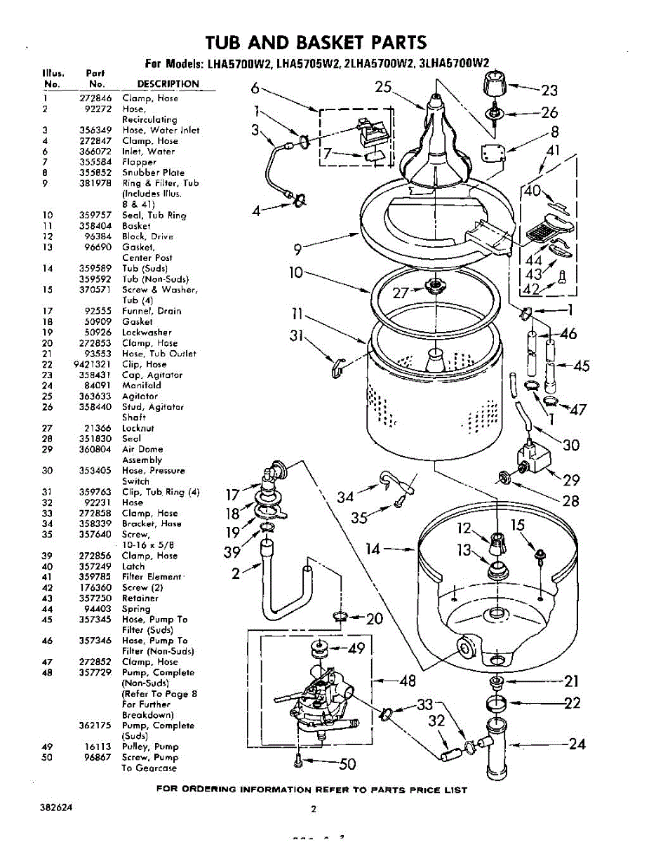 Parts for Whirlpool 2LHA5700W2: 02 - Tub And Basket Parts