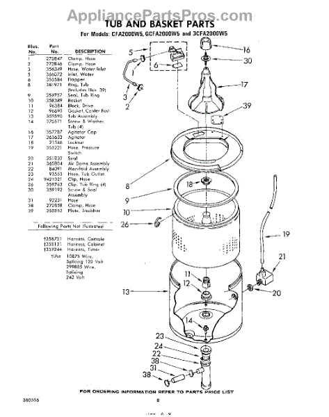 Parts for Whirlpool 3CFA2000W5: 08 - Tub And Basket Parts