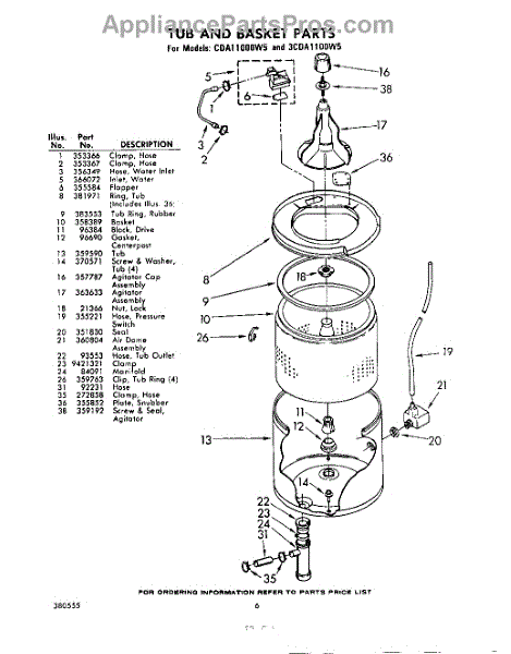 Parts for Whirlpool CDA1100W5: 06 - Tub And Basket Parts