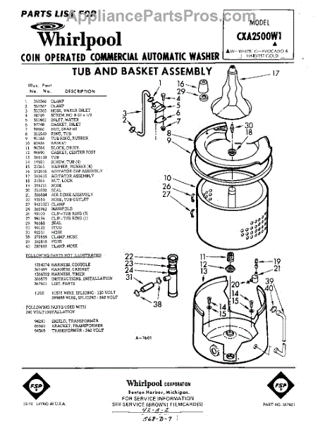 Parts for Whirlpool CXA2500W1: 01 - Tub And Basket Parts