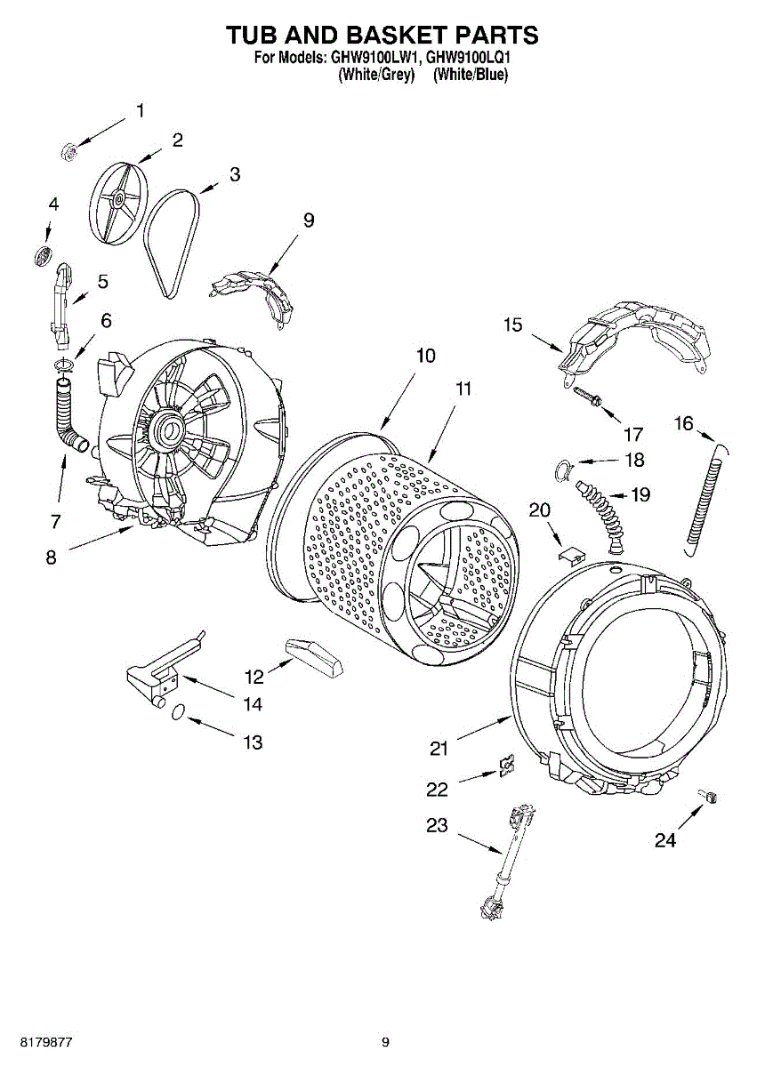 Inner wash basket includes: Inner basket, baffles, spider and shaft.