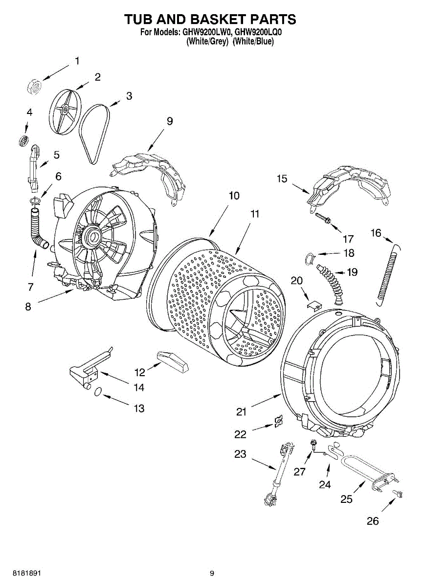 Parts for Whirlpool GHW9200LQ0: 05 - Tub And Basket Parts