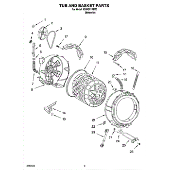 This tub clamp secures a flexible seal or hose to the appliance's tub, maintaining a tight, leak-resistant connection. Replace a weakened or damaged clamp to stop leaks and keep the tub joint stable during operation.