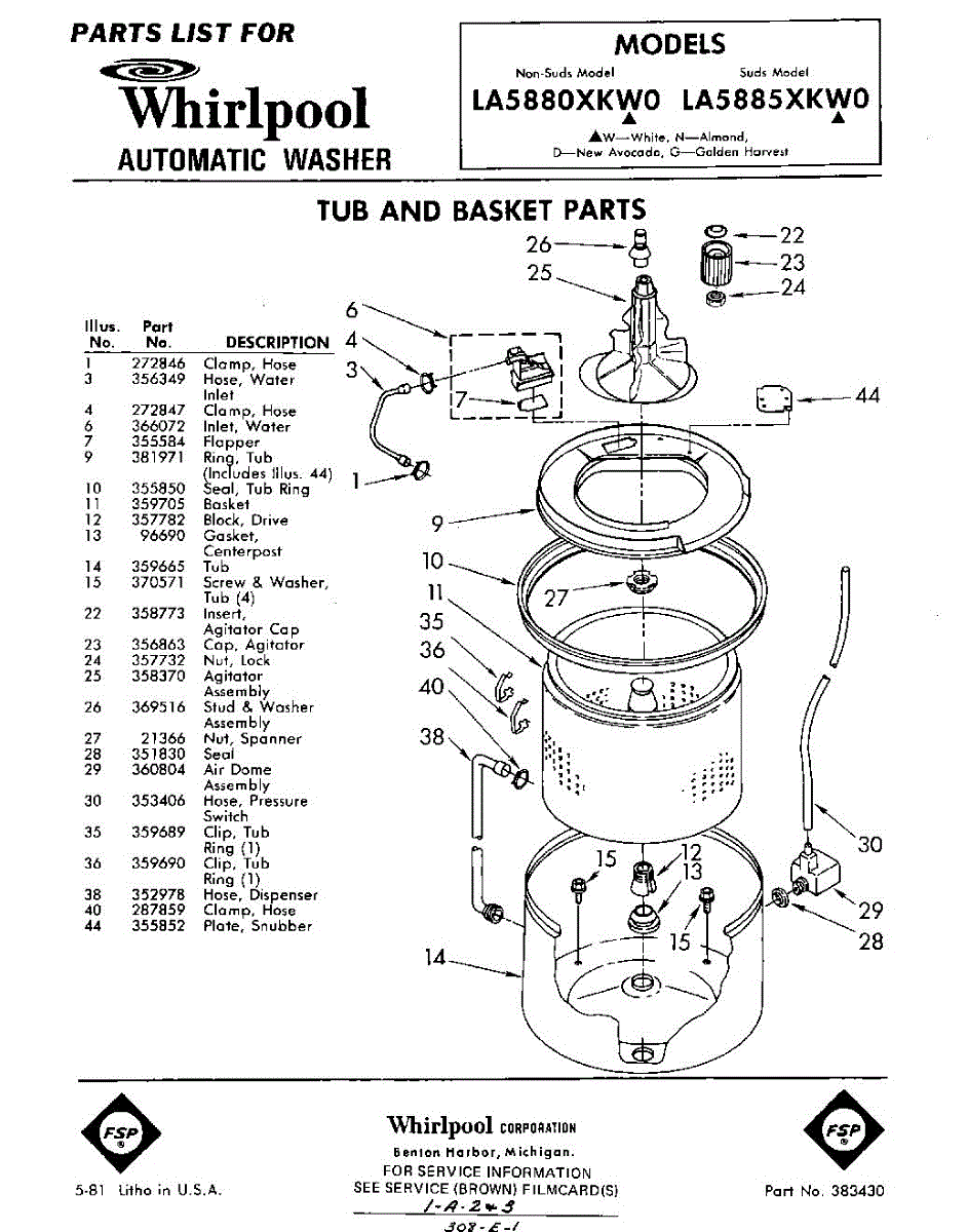 Parts for Whirlpool LA5885XKW0: 01 - Tub And Basket Parts