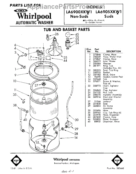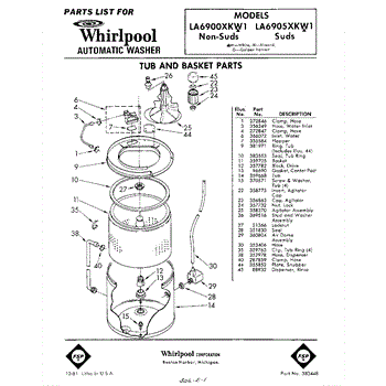 Parts for Whirlpool LA6900XKW1: 01 - Tub And Basket Parts