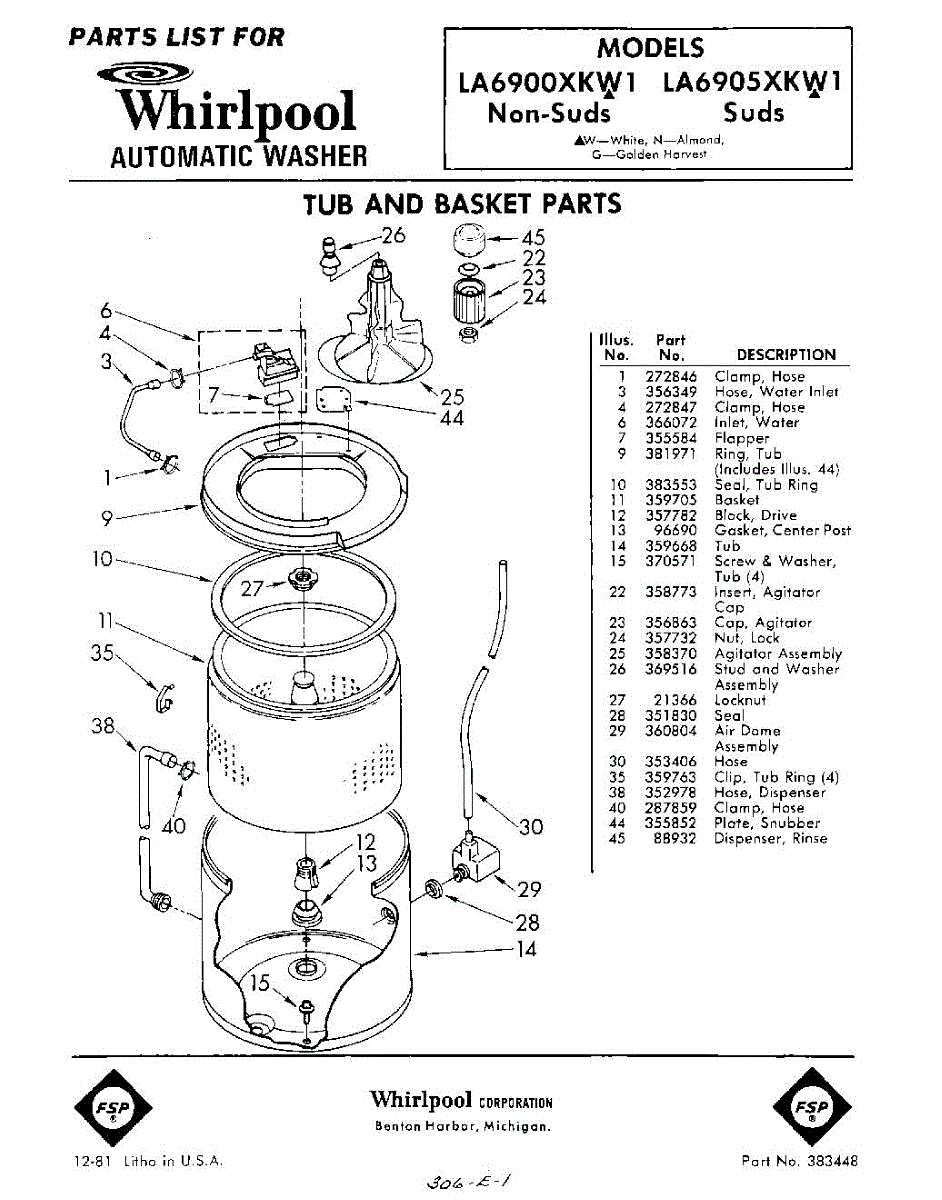 Parts for Whirlpool LA6905XKW1: 01 - Tub And Basket Parts