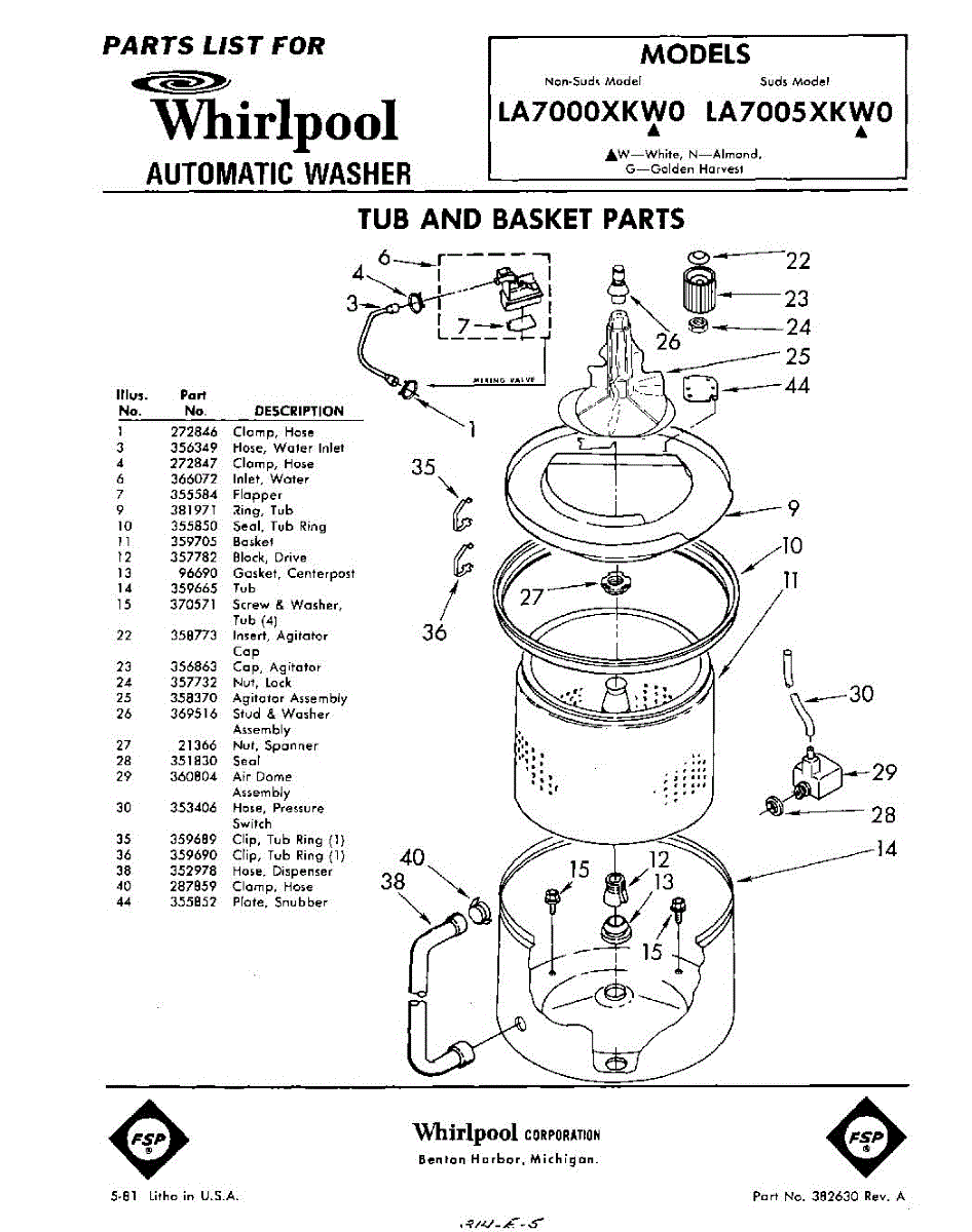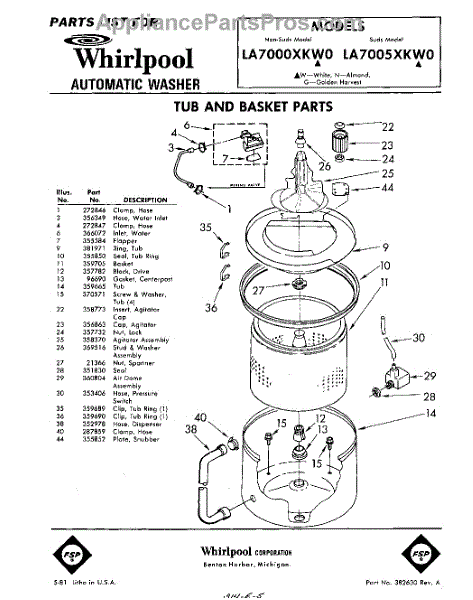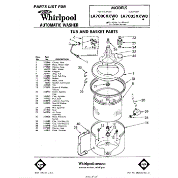 Parts for Whirlpool LA7000XKW0: 01 - Tub And Basket Parts