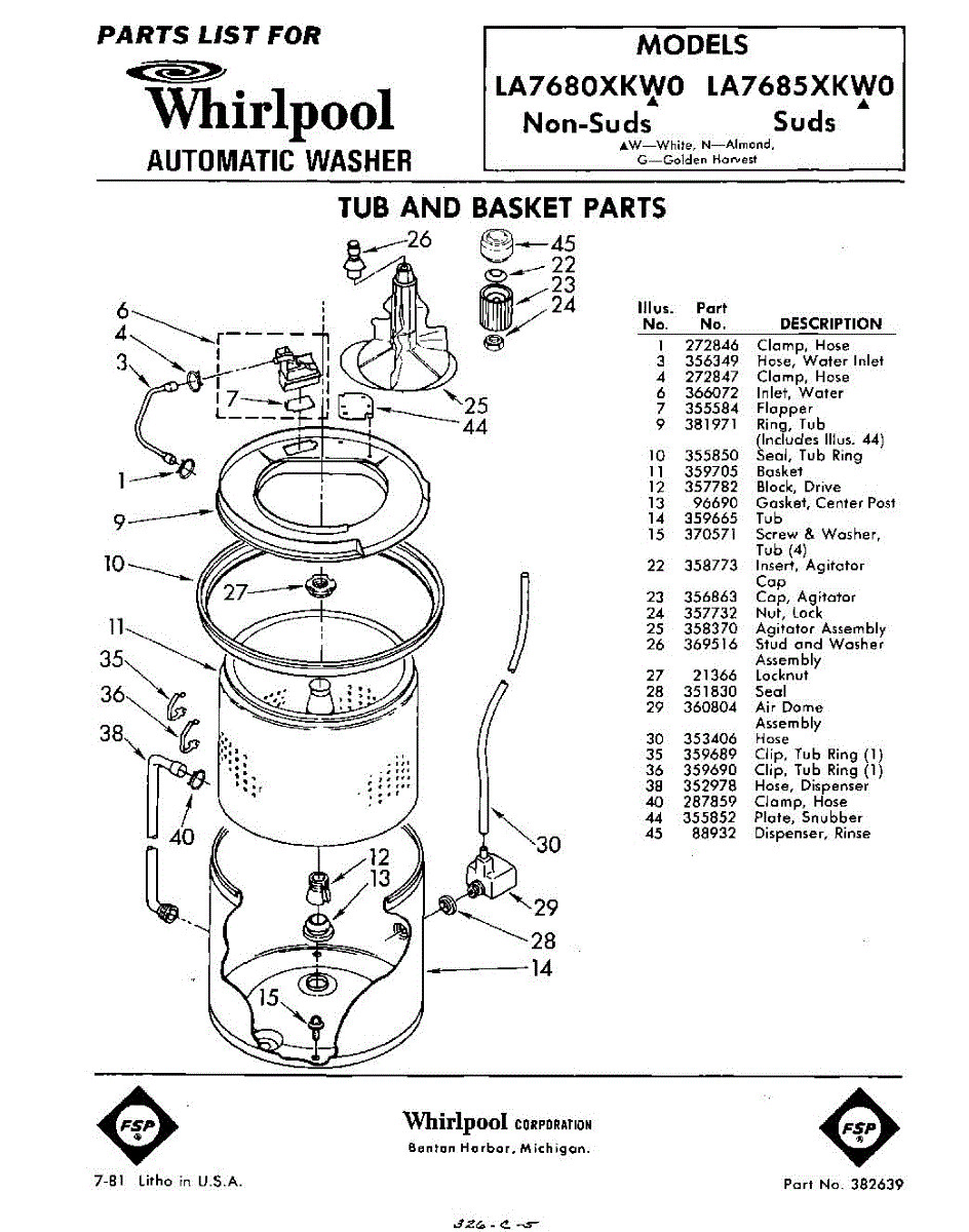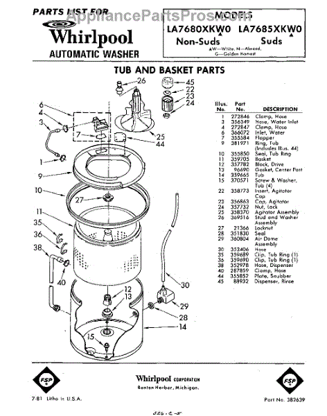 Parts for Whirlpool LA7685XKW0: 01 - Tub And Basket Parts