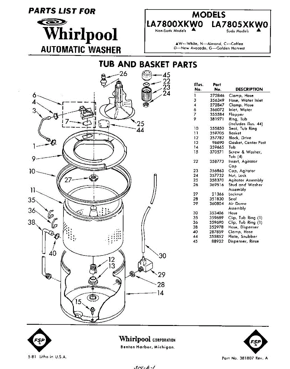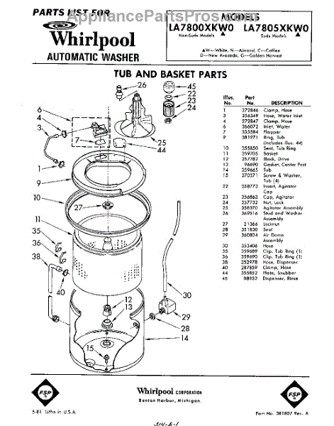 Parts for Whirlpool LA7800XKW0: 01 - Tub And Basket Parts