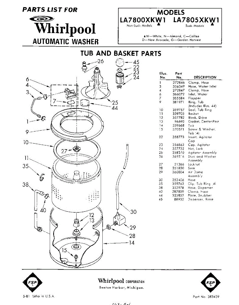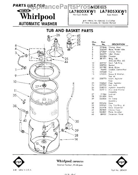 Parts for Whirlpool LA7800XKW1: 01 - Tub And Basket Parts