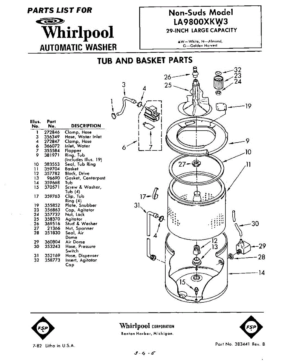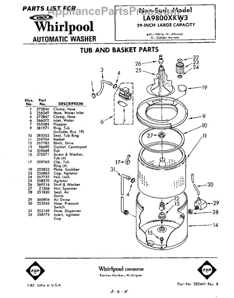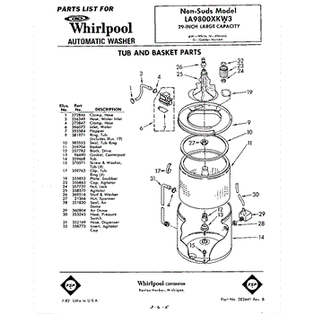 Parts for Whirlpool LA9800XKW3: 01 - Tub And Basket Parts