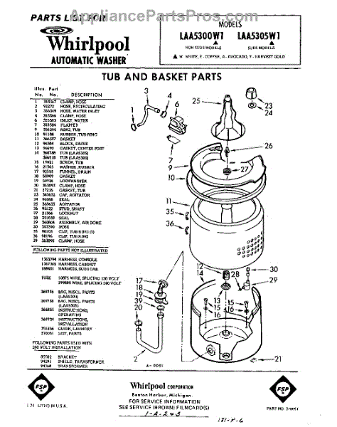 Parts for Whirlpool LAA5305W1: 01 - Tub And Basket Parts