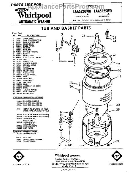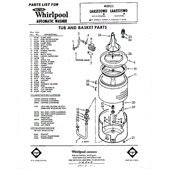 Parts for Whirlpool LAA5525W0: 01 - Tub And Basket Parts