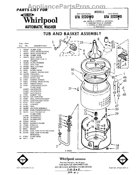 Parts for Whirlpool LFA5525W0: 01 - Tub And Basket Parts