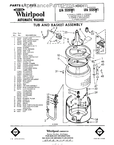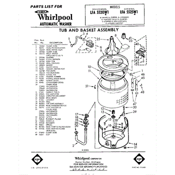 Parts for Whirlpool LFA5525W1: 01 - Tub And Basket Parts