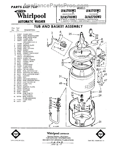 Parts for Whirlpool LFA5700W2: 01 - Tub And Basket Parts
