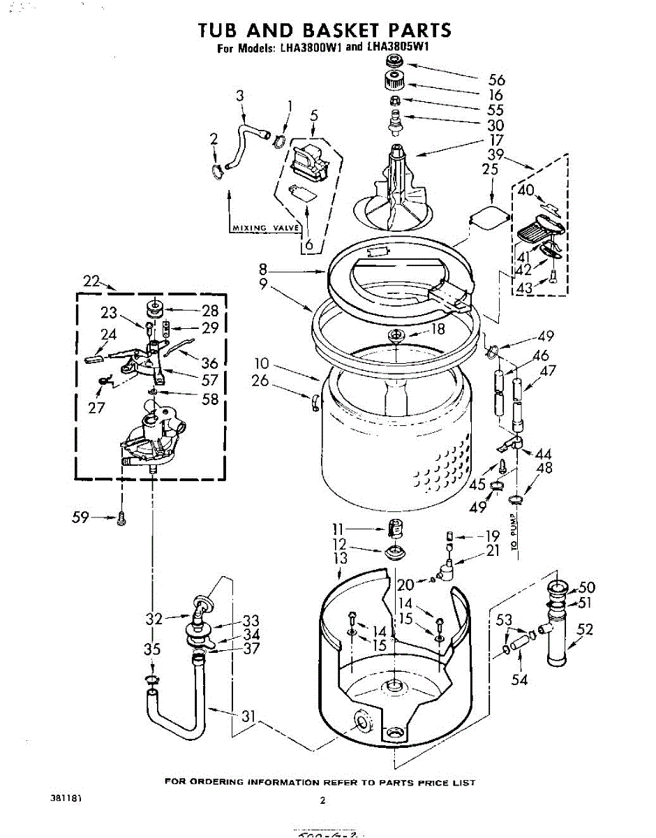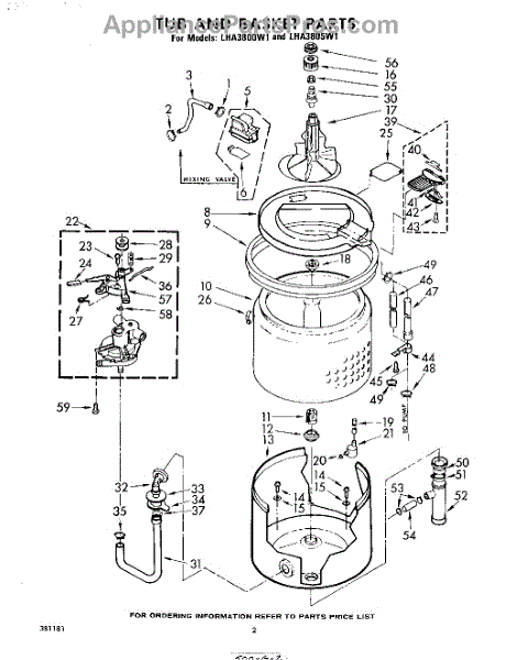 Parts for Whirlpool LHA3800W1: 02 - Tub And Basket Parts