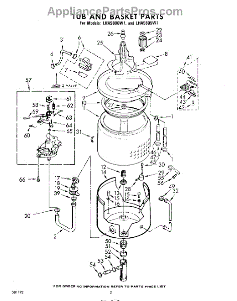 Parts for Whirlpool LHA5800W1: 02 - Tub And Basket Parts