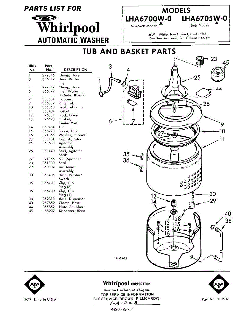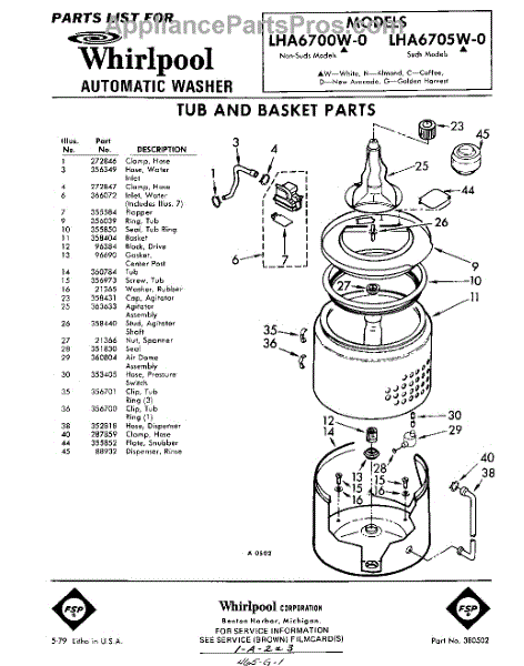 Parts for Whirlpool LHA6700W0: 01 - Tub And Basket Parts