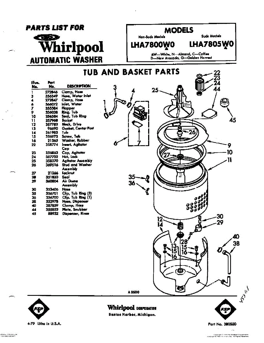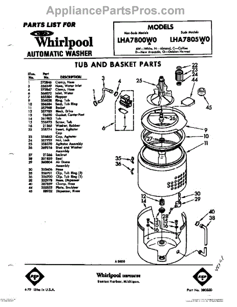 Parts for Whirlpool LHA7800W0: 01 - Tub And Basket Parts