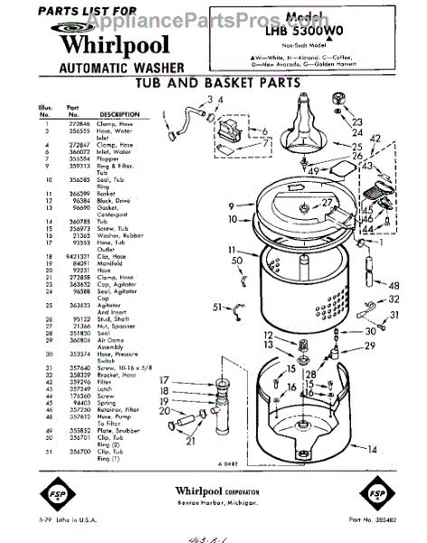 Parts for Whirlpool LHB5300W0: 01 - Tub And Basket Parts