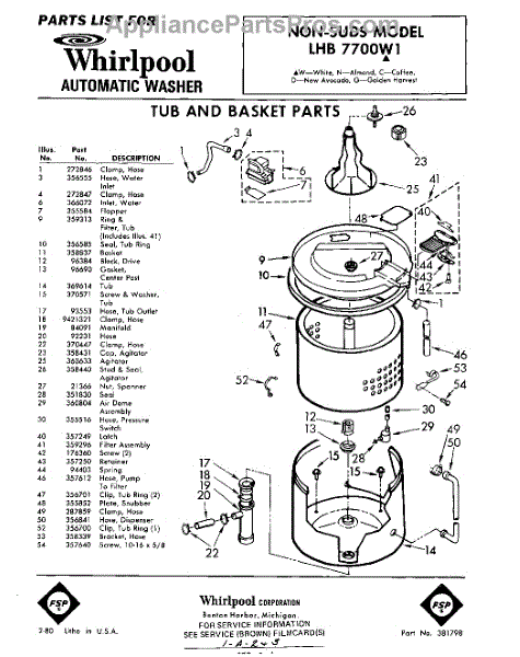 Parts for Whirlpool LHB7700W1: 01 - Tub And Basket Parts