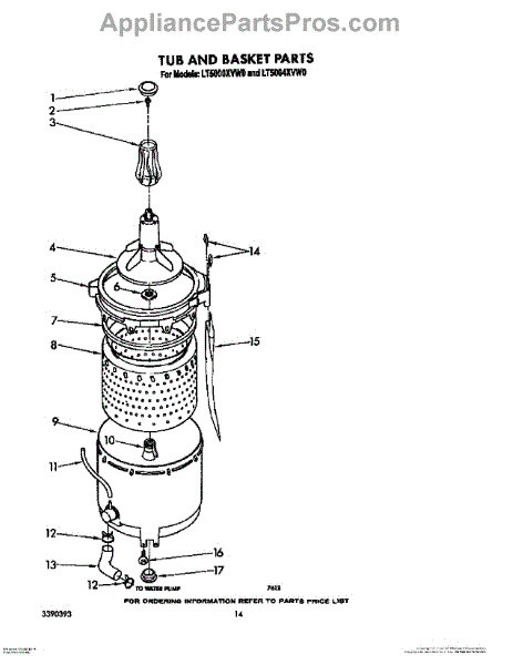 Parts for Whirlpool LT5000XVW0: 11 - Tub And Basket Parts