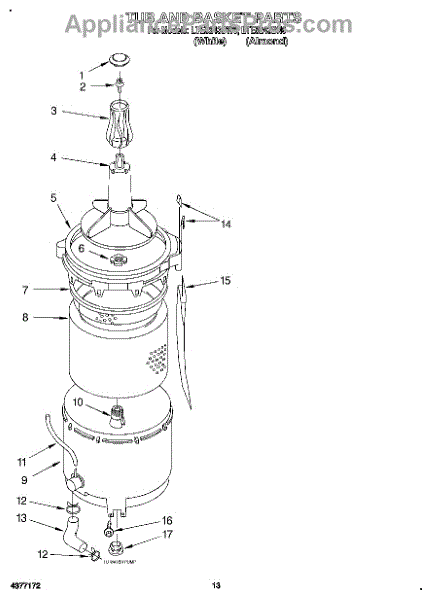 Parts for Whirlpool LTE5243BN0: 10 - Tub And Basket Parts
