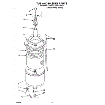 Parts for Whirlpool LTG5243DQ4: 10 - Tub And Basket Parts