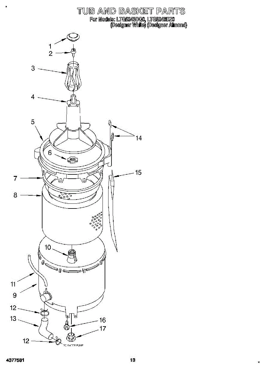 Parts for Whirlpool LTG5243DZ0: 10 - Tub And Basket Parts