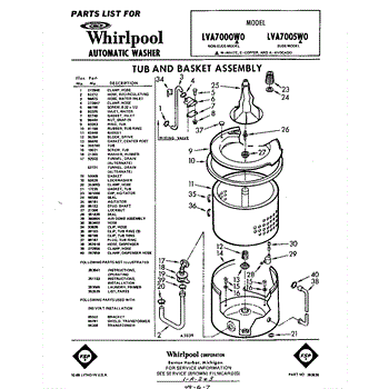 Parts for Whirlpool LVA7005W0: 01 - Tub And Basket Parts