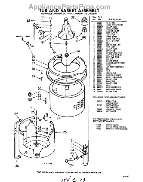 Parts for Whirlpool LVA7705W1: 04 - Tub And Basket Parts