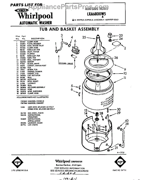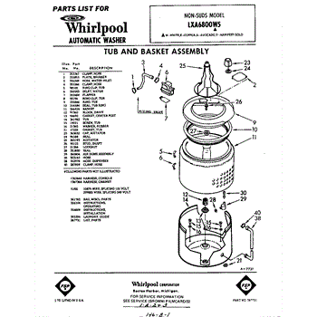 Parts for Whirlpool LXA6800W5: 01 - Tub And Basket Parts