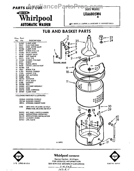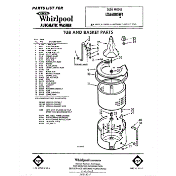Parts for Whirlpool LXA6805W4: 01 - Tub And Basket Parts
