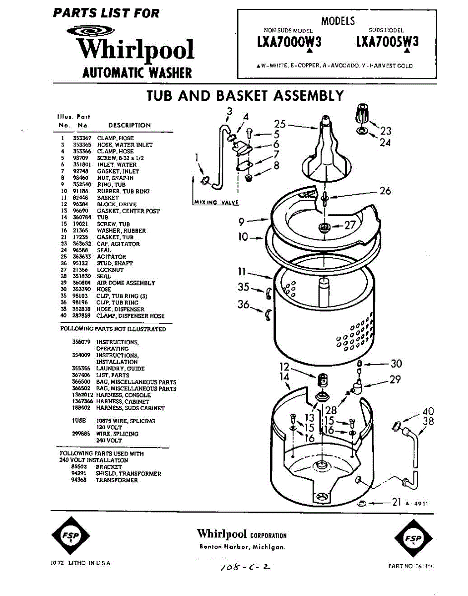 Parts for Whirlpool LXA7000W3: 01 - Tub And Basket Parts