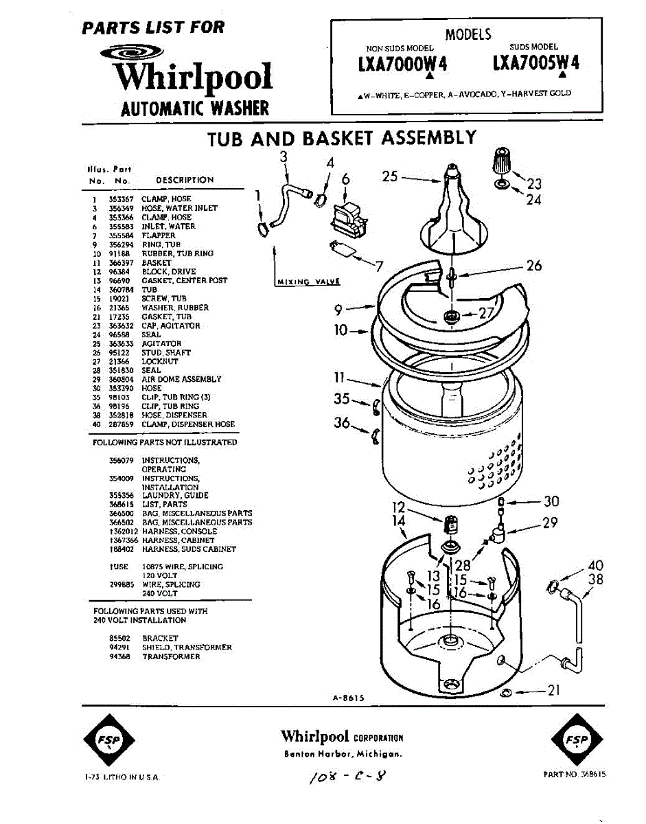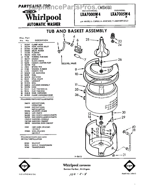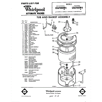 Parts for Whirlpool LXA7000W4: 01 - Tub And Basket Parts