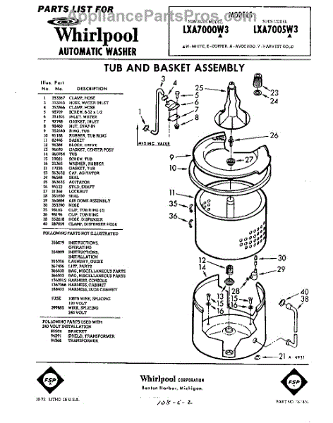 Parts for Whirlpool LXA7005W3: 01 - Tub And Basket Parts