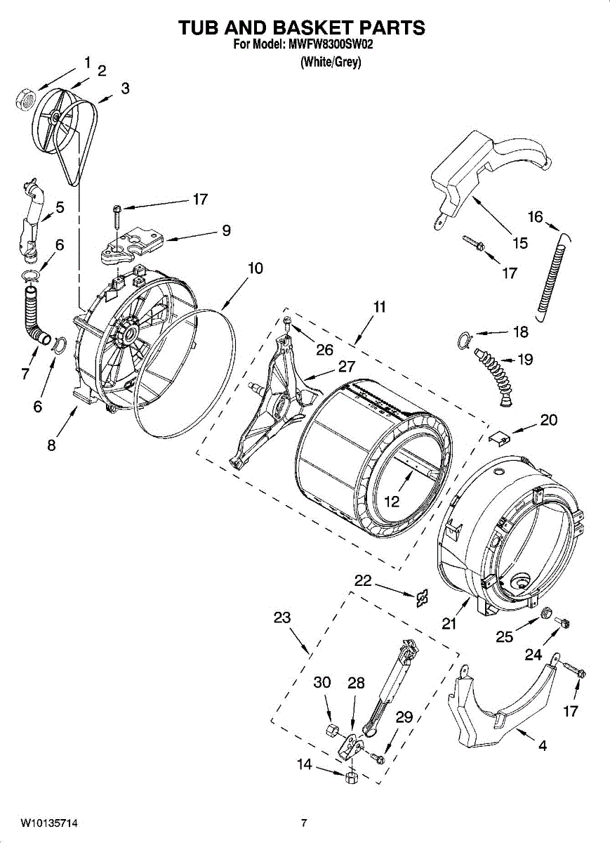 Service tub gasket that creates a watertight seal between the washer tub and cabinet. Replaces a worn or damaged seal to help stop leaks and limit water damage around the appliance. What it does: