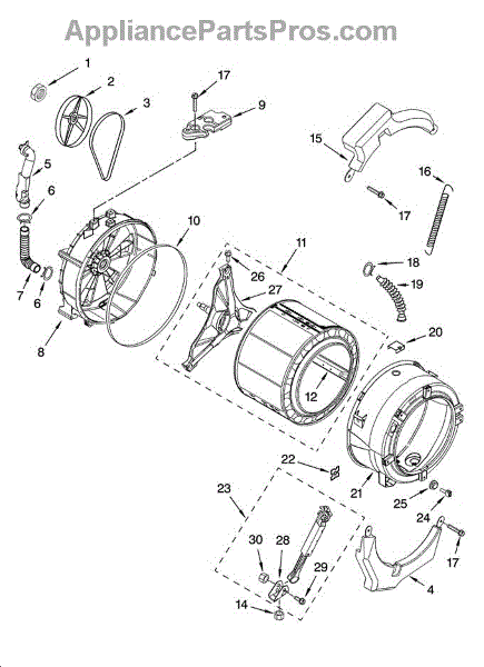 Replace your washer's cracked or damaged outer tub assembly. Includes front and rear tub sections with integrated bearing and gasket for complete repair.