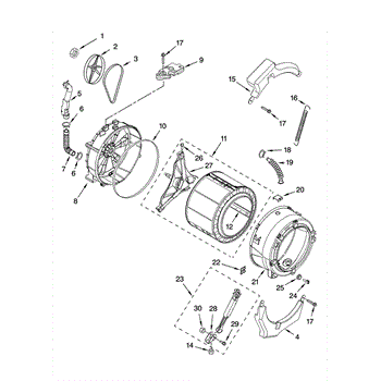 Service tub gasket that creates a watertight seal between the washer tub and cabinet. Replaces a worn or damaged seal to help stop leaks and limit water damage around the appliance. What it does: