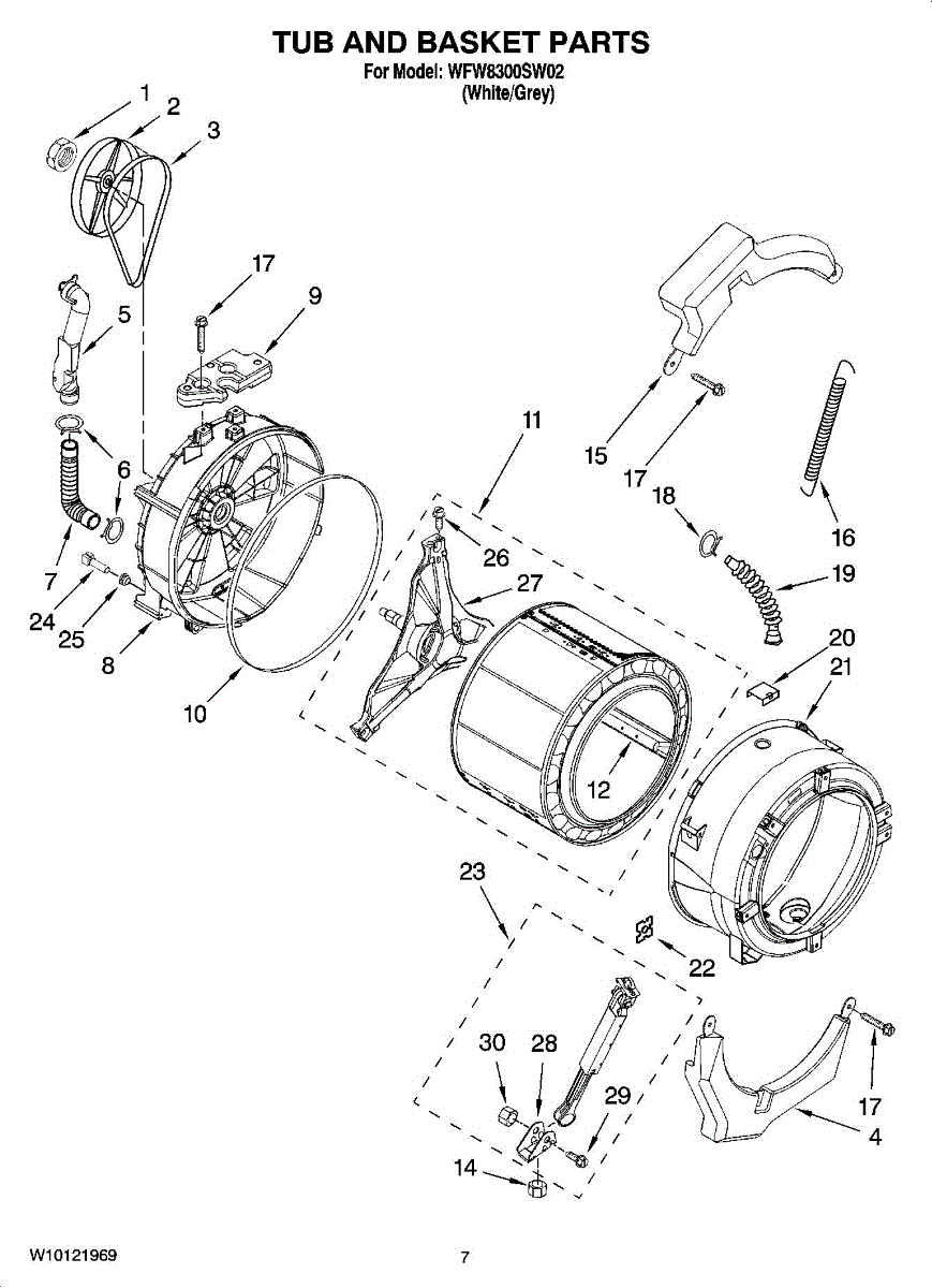 Service tub gasket that creates a watertight seal between the washer tub and cabinet. Replaces a worn or damaged seal to help stop leaks and limit water damage around the appliance. What it does: