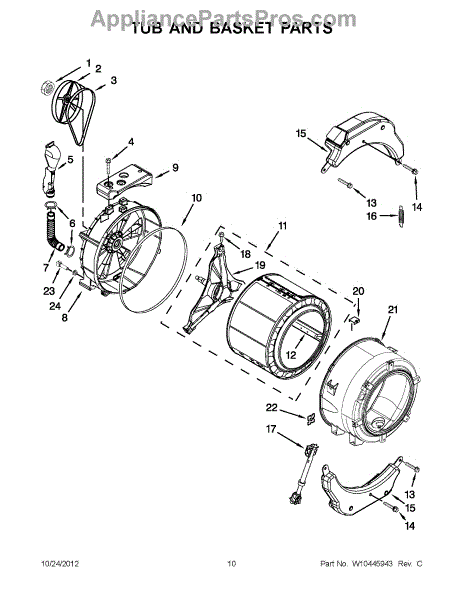 This outer tub replaces the washer's outer wash tub that holds the inner drum and directs water during cycles. Installing a new outer tub restores the washer's ability to contain water and maintain proper drum alignment. What it does: