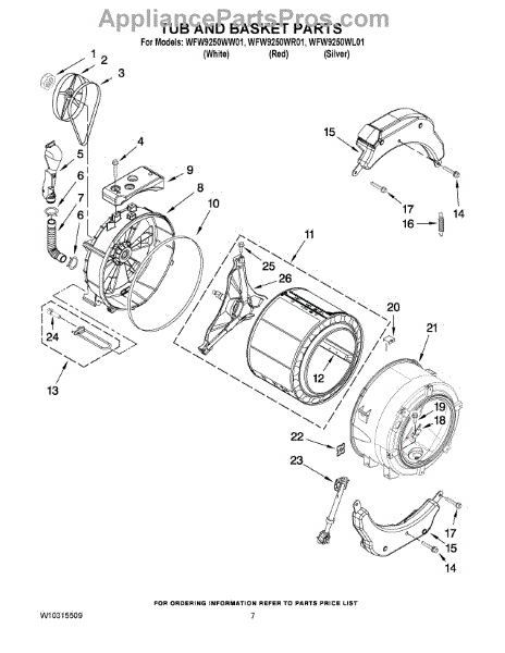 Parts for Whirlpool WFW9250WR01: 06 - Tub And Basket Parts