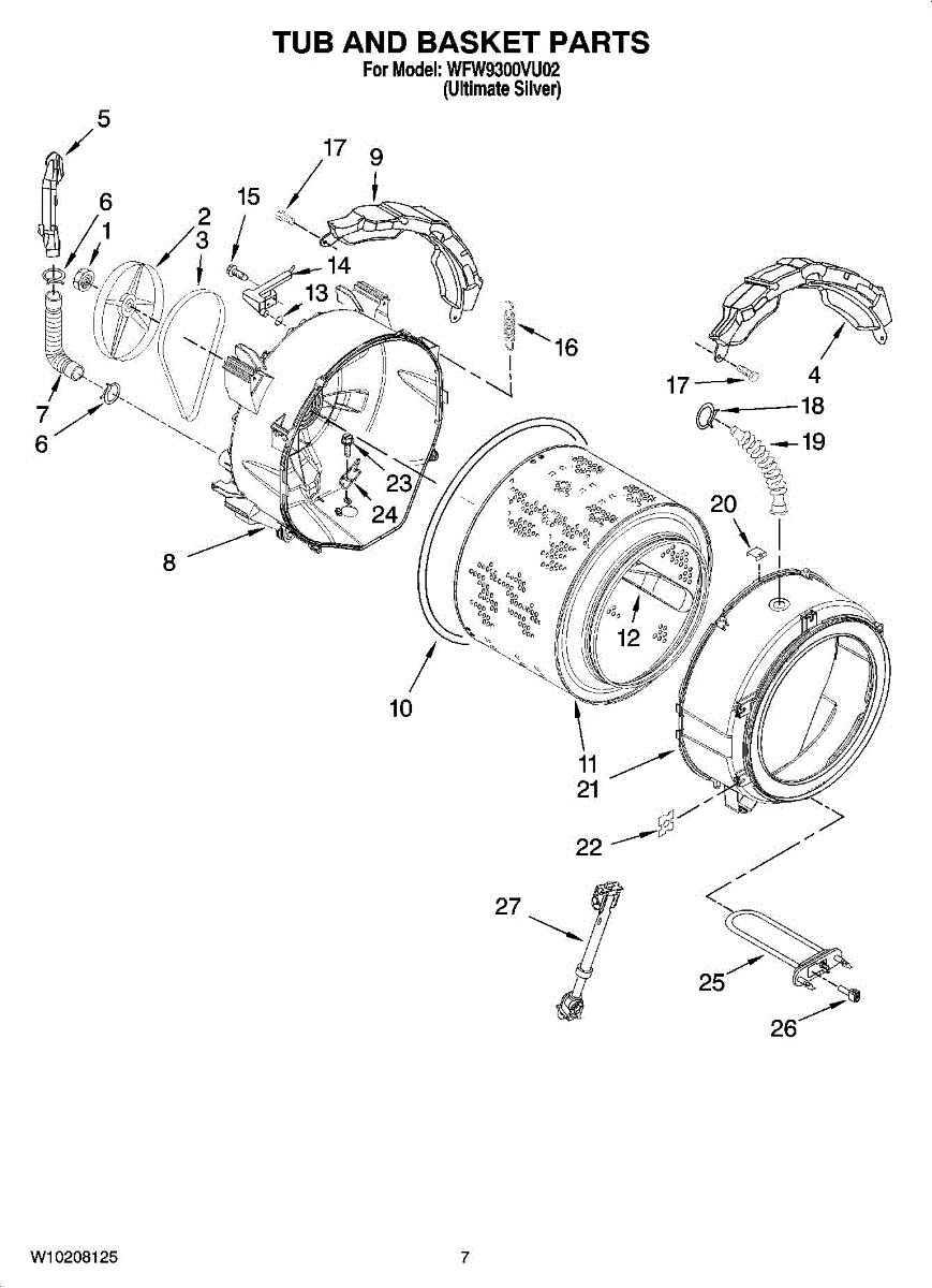 Parts for Whirlpool WFW9300VU02: 05 - Tub And Basket Parts