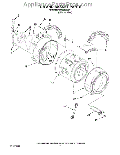 Replaces the large stationary outer tub that holds water and supports the inner basket. Order when tub is cracked, leaking, or structurally damaged.