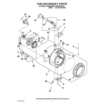 This tub clamp secures a flexible seal or hose to the appliance's tub, maintaining a tight, leak-resistant connection. Replace a weakened or damaged clamp to stop leaks and keep the tub joint stable during operation.